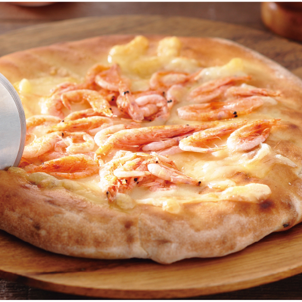 モチモチの生地に静岡の特産品である「しらす」と「桜えび」をのせました。素材とチーズだけのシンプルなピザなので、素材の風味がしっかり。お好みでオリーブオイルをかけるとさらに美味しくお召し上がりいただけます。