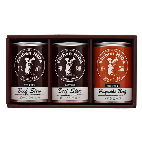 | 内容 | 飛騨牛ビーフシチュー430g×2缶、飛騨牛ハヤシビーフ430g×1缶 |