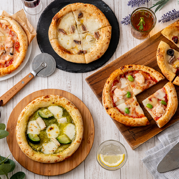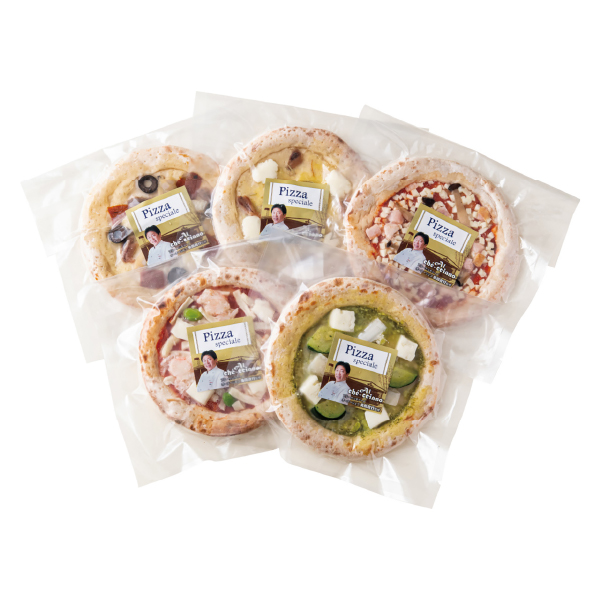 | 内容 | スモークチキンとローストきのこのトマトピザ・まるずわいがにとだだ茶豆のトマトピザ・アンチョビとローストガーリックのピザ・魚介たっぷりのマリナーラピザ・ローストいかのジェノベーゼピザ×各1枚(直径約15cm) |