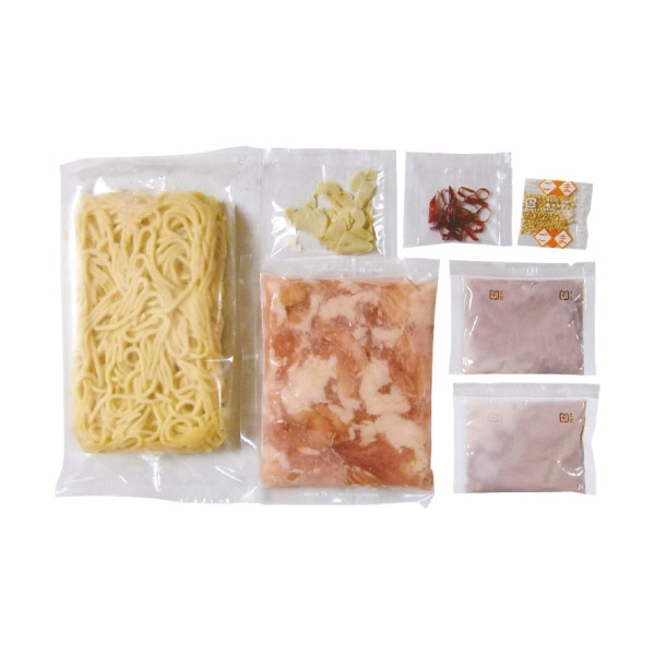 | 内容 | 牛もつ肉(国内産)(約100g)・ちゃんぽん麺(約180g)・にんにく(約3g)・唐辛子(約0.5g)・白ごま(約0.7g)×各1、もつ鍋用濃縮とんこつスープ(約36g)×2 |