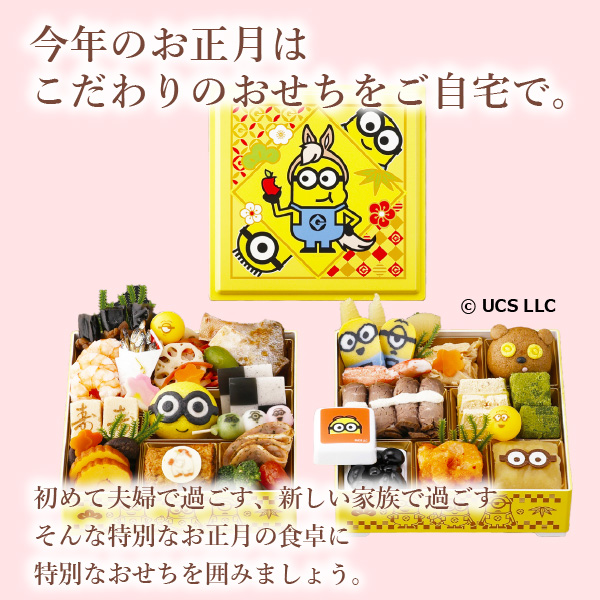 本格的な和のおせちにハチャメチャなミニオンたちがいっぱい!ミニオンと一緒に家族で楽しく新年をお祝い!
