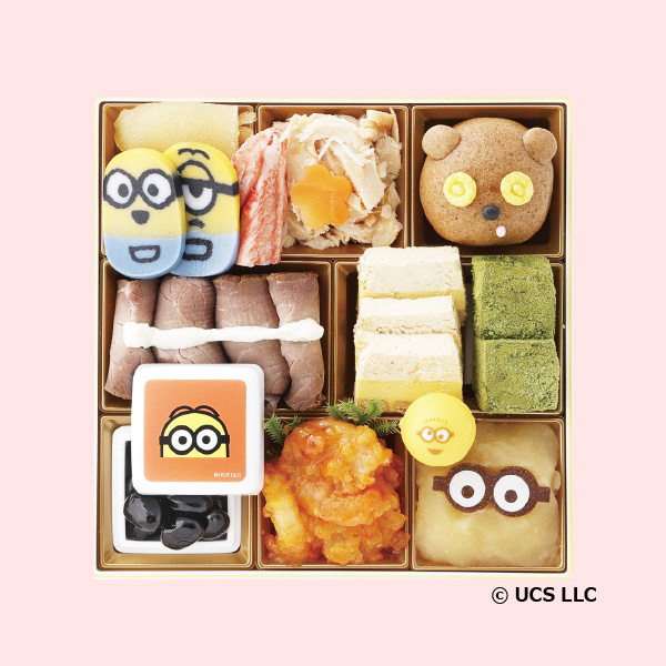 ハチャメチャなミニオンがいっぱいのキュートなおせち。味は大人向けにワンランク上の本格派和洋。
