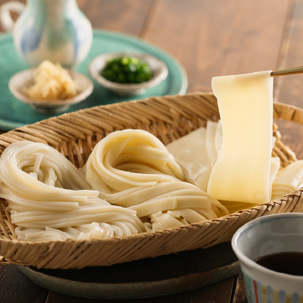 創業明治27年の花山うどん自慢の麺を詰合せました。看板商品の「花山うどん」、幅広でもちもち感が特長の群馬ご当地麺「ひも川」、ご当地うどん日本一を決める大会で三年連続優勝に輝いた茹で上がり約5cm幅の「鬼ひも川」。3種の太さが異なる麺を、本格つゆでお楽しみください。