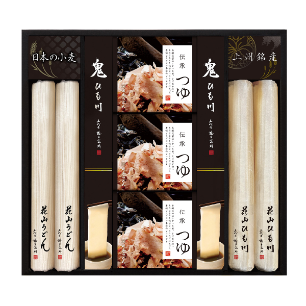 | 内容 | 花山うどん・花山ひも川・鬼ひも川 各90g×2、伝承つゆ70g×6 |