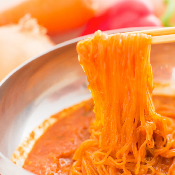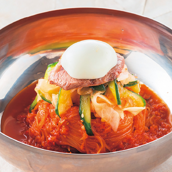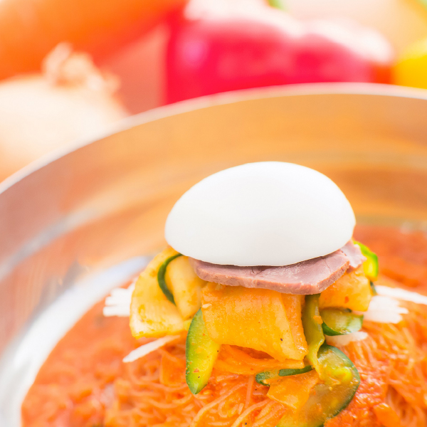 唐辛子の辛味と野菜の自然な甘みが活きた、熟成発酵し続ける奥深い辛みの特製べジソースが、つるりとした食感の極細本格生麺に良く絡み相性が抜群。お店の味をそのままお召しあがりいただきたいという想いから、麺とソース、さらにはトッピングまで詰合せた人気店の本格ピビン冷麺をお楽しみください。