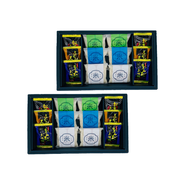 | 内容 | 新潟県産コシヒカリ150g(1合)×4、新潟県産こしいぶき150g(1合)×4、五ツ星マイスター米ブレンド150g(1合)×4、松茸のお吸物4.2g×4、ふかひれスープ5.5g×4、あわび入お吸物4g×4 |
