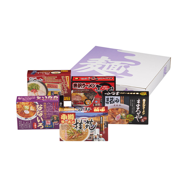 | 内容 | 北海道小樽ラーメン「桂苑」味噌味(2食入)(252g)・喜多方ラーメン「まるや」醤油味(2食入)(220g)・米沢ラーメン「三男坊」味噌味(2食入)(268g)・飛騨高山ラーメン「なないろ」醤油味(2食入)(250g)・博多ラーメン「いっちょいっちょ」豚骨味(2食入)(230g)×各1 |