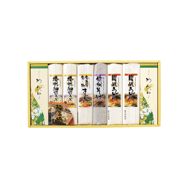 | 内容 | 讃岐うどん180g・播州細切うどん150g×各4、信州そば120g・名古屋名物きしめん150g×各2、めんつゆ25g×12 |
