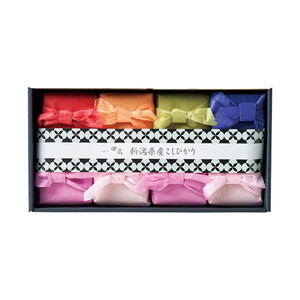 | 内容 | 新潟県産コシヒカリ150g×5、松茸のお吸物4.2g・ふかひれスープ5.5g・あわび入お吸物4g×各2、笹川流れの塩80g×1 |