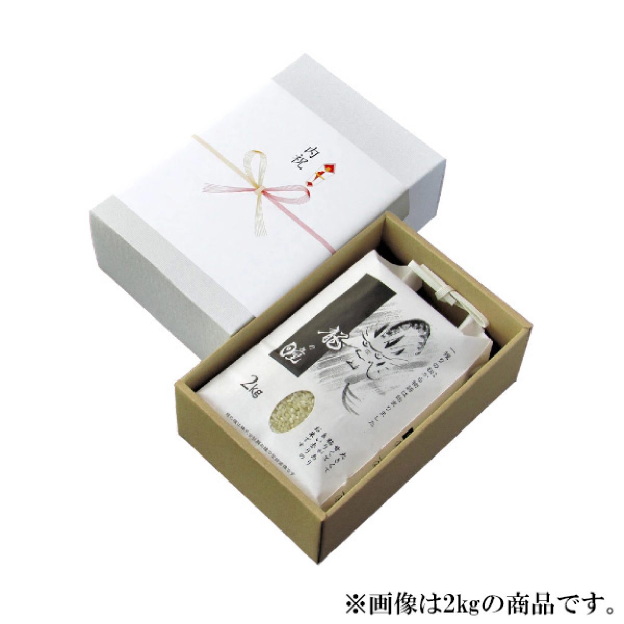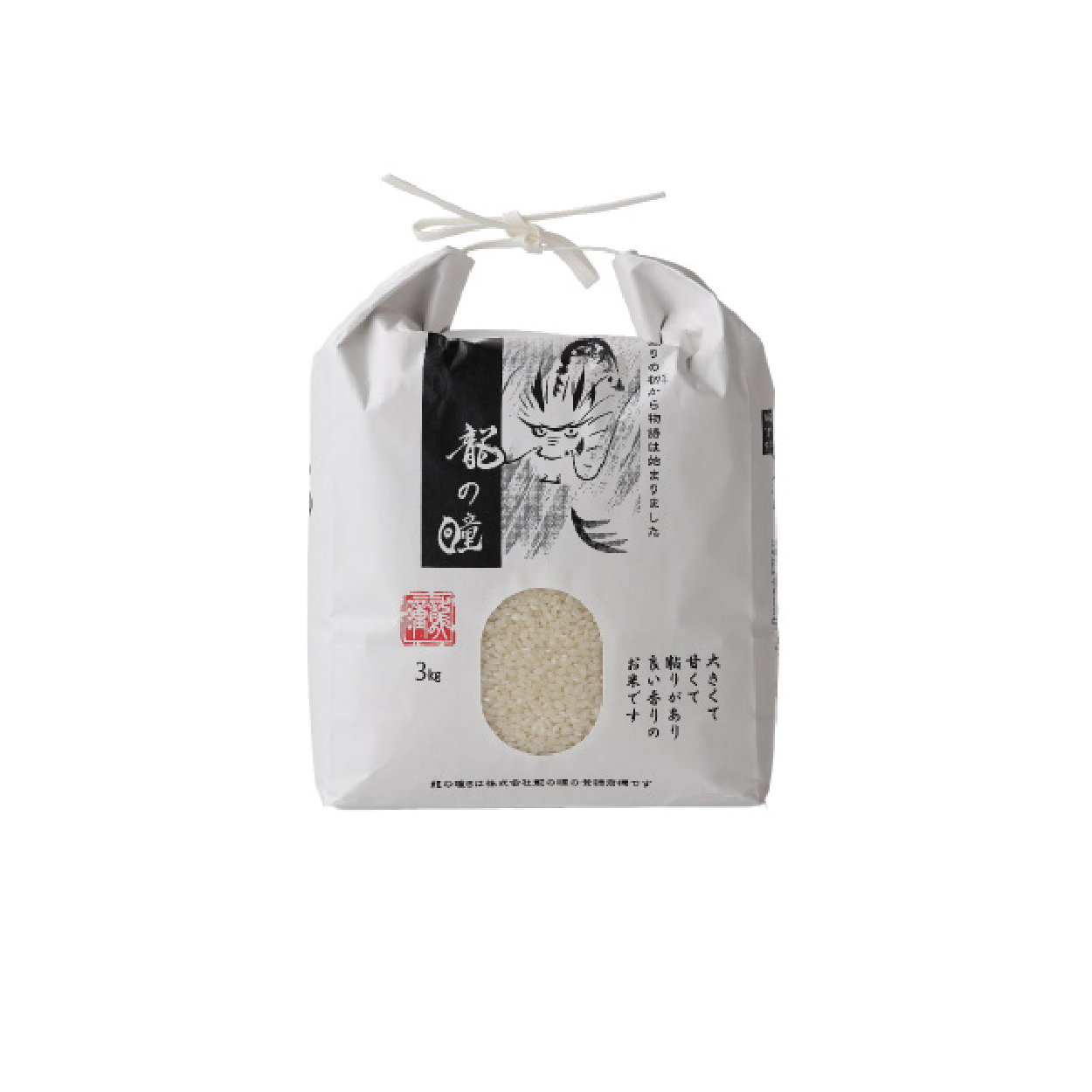 龍の瞳3kgをクラフト米袋にお入れし、お祝いやお返しに最適なギフトボックス・のしで丁寧にお包みしてお届けいたします。
