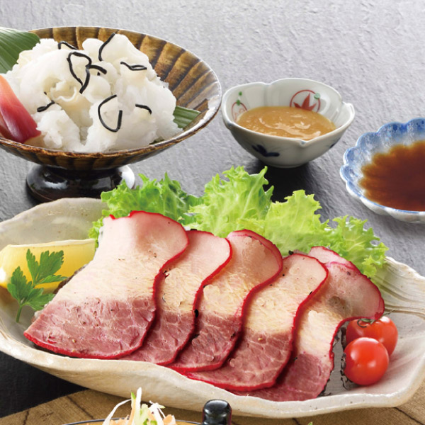 | 内容 | 鯨ベーコンスライス(約50g)・ポン酢(約12g)×各3、鯨おばいけ(約50g)・からし酢味噌(約20g)×各1 |