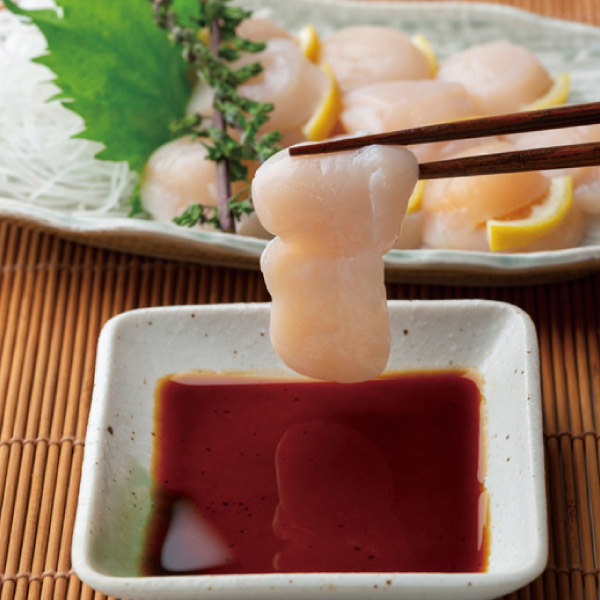北海道産の帆立貝から貝柱のみを外し、急速冷凍いたしました。冷蔵庫で自然解凍後、お刺身でお召し上がっていただくのが一番のおすすめです。甘みがありプリプリの食感を存分にお楽しみください。