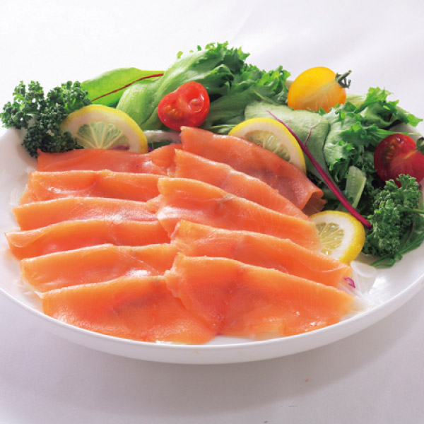 北海道産秋鮭をヒッコリーチップでスモークし、熟成した鮭の旨味を引き出した使いやすいスライスタイプのスモークサーモンです。サラダ、オードブルなど、アレンジ次第で様々な料理に使えます。