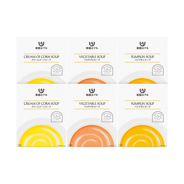 | 内容 | クリームコーンスープ(160g)・ベジタブルスープ(160g)・パンプキンスープ(160g)×各2 |