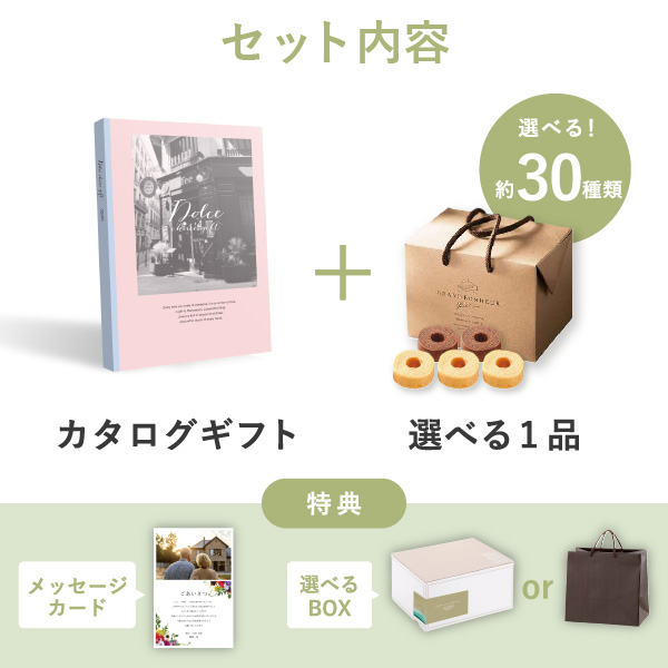 人気のカタログギフトや品物ギフトにプラス1品の食品ギフトをセットにした、お返しに人気のギフトセットです。写真が入るオリジナルメッセージカード、手渡しに便利なバッグorギフトボックスがついた便利なギフトセット。香典返しや法事用のお返しなどの様々なギフトシーンでご利用いただけます。