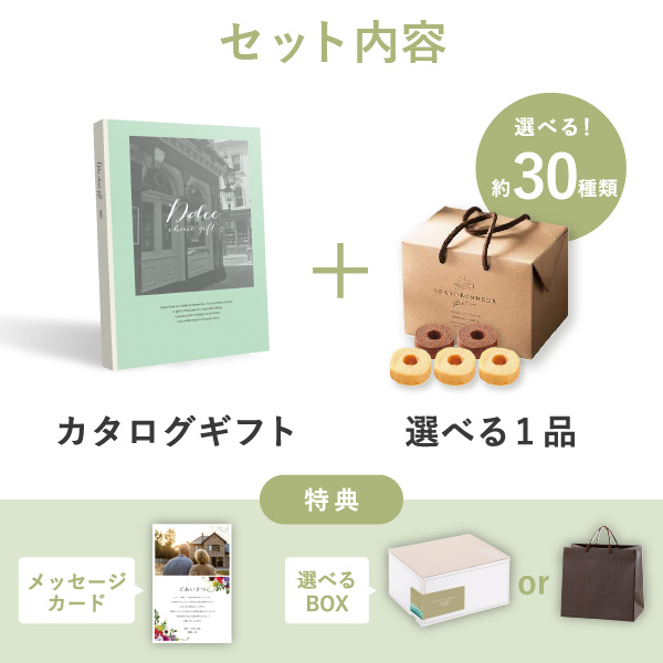 人気のカタログギフトや品物ギフトにプラス1品の食品ギフトをセットにした、お返しに人気のギフトセットです。写真が入るオリジナルメッセージカード、手渡しに便利なバッグorギフトボックスがついた便利なギフトセット。香典返しや法事用のお返しなどの様々なギフトシーンでご利用いただけます。