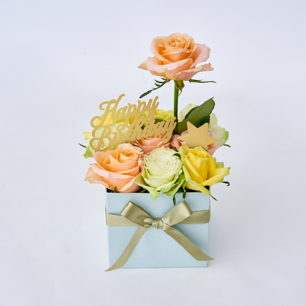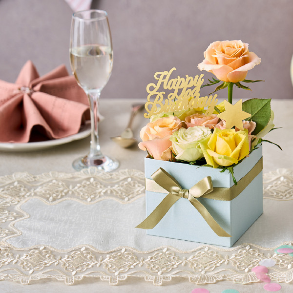 | 内容 | お任せバラのボックスアレンジメント(ビタミンカラー系)×1、HappyBirthdayトッパー付き(アレンジメントサイズW約11×D約11×T約20cm)、お手入れのしおり ※写真はイメージです。 ※季節により使用輪数が変わる場合がございます。 ※オレンジ・イエロー・グリーン系の品種より選定し組み合わせます。 ※写真の使用品種は一例です。 ※収穫状況により使用品種は変わりますのでご了承ください。 ※植物につき、色・形・大きさに個体差がある場合がございます。 ※メーカーの都合により、予告なくパッケージまたは商品の仕様が変更になる場合があります。 ※季節によってクール便でお届けします。 ※遠隔地・離島などお届けできない地域がございます。 |
