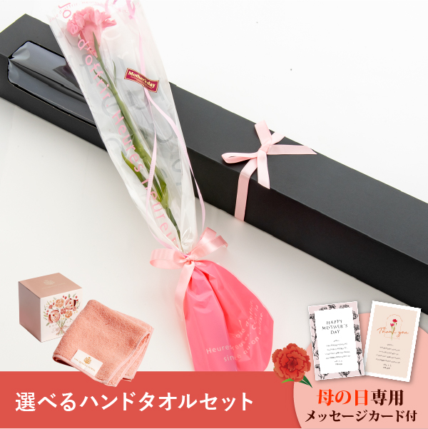 そんな気持ちを形にする母の日に人気のお花と、バラの花から抽出した染料で美しく染め上げたハンドタオルのギフトセットです。おしゃれなオリジナルのメッセージカード付き。