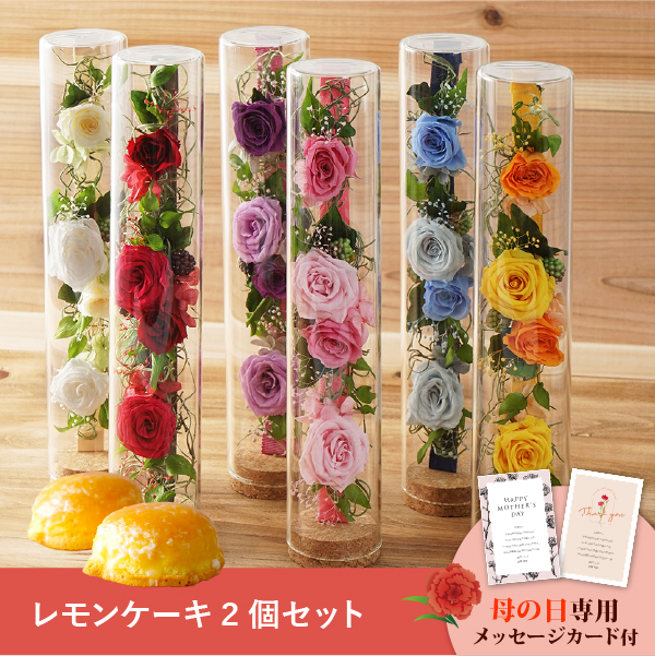 そんな気持ちを形にする母の日に人気のお花と、菓子工房さっちんとコラボしたレモンケーキのギフトセットです。おしゃれなオリジナルのメッセージカード付き。