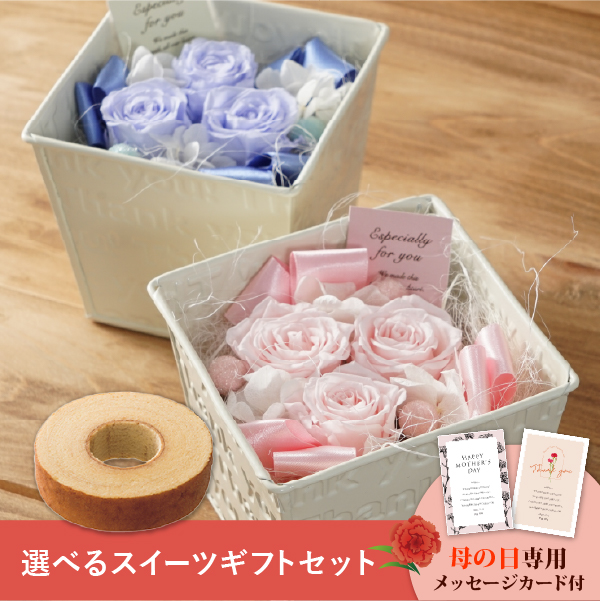 そんな気持ちを形にする母の日に人気のお花と、選べるスイーツのギフトセットです。おしゃれなオリジナルのメッセージカード付き。