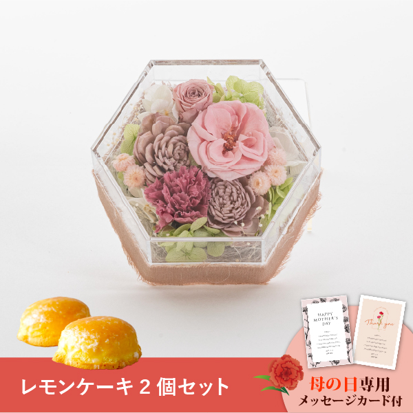 そんな気持ちを形にする母の日に人気のお花と、菓子工房さっちんとコラボしたレモンケーキのギフトセットです。おしゃれなオリジナルのメッセージカード付き。