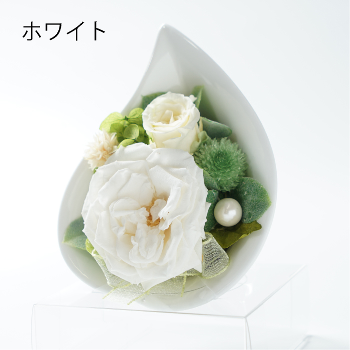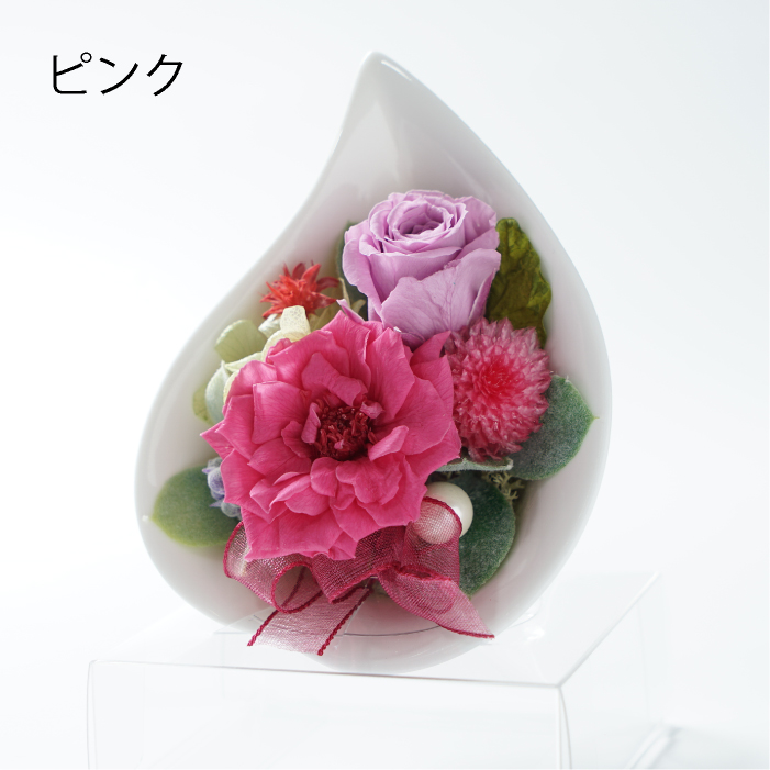 | 内容 | <プリザーブドフラワー>バラ(SS・M)・千日紅・あじさい・ハツユキカズラ <ドライフラワー>ミニコーンフラワー <アーティフィシャルフラワー>ポーチベリー <その他>パールボール・リボン |