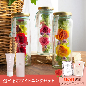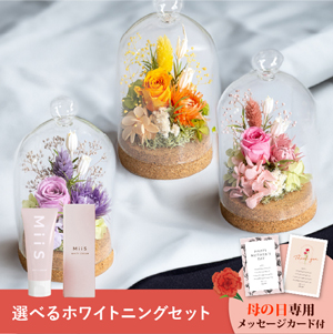 そんな気持ちを形にする母の日に人気のお花と、ホワイトニングクリームのギフトセットです。おしゃれなオリジナルのメッセージカード付き。