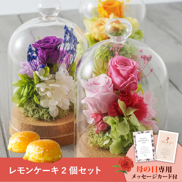 そんな気持ちを形にする母の日に人気のお花と、菓子工房さっちんとコラボしたレモンケーキのギフトセットです。おしゃれなオリジナルのメッセージカード付き。