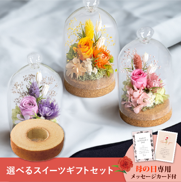 そんな気持ちを形にする母の日に人気のお花と、選べるスイーツのギフトセットです。おしゃれなオリジナルのメッセージカード付き。