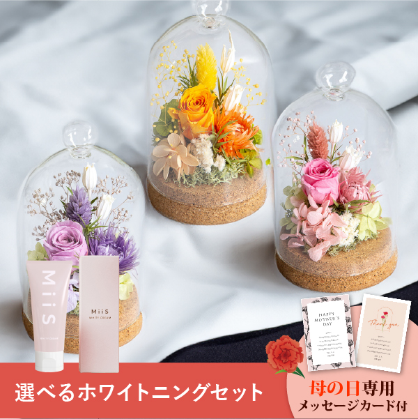 そんな気持ちを形にする母の日に人気のお花と、ホワイトニングクリームのギフトセットです。おしゃれなオリジナルのメッセージカード付き。