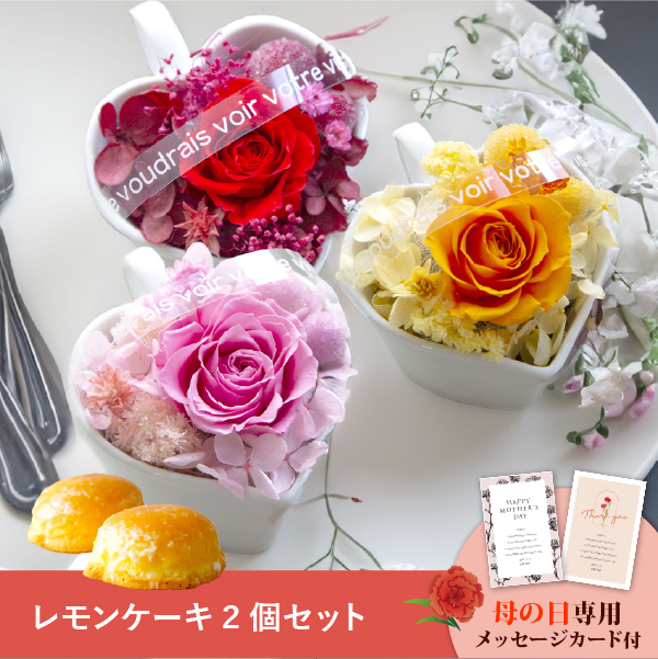 そんな気持ちを形にする母の日に人気のお花と、菓子工房さっちんとコラボしたレモンケーキのギフトセットです。おしゃれなオリジナルのメッセージカード付き。