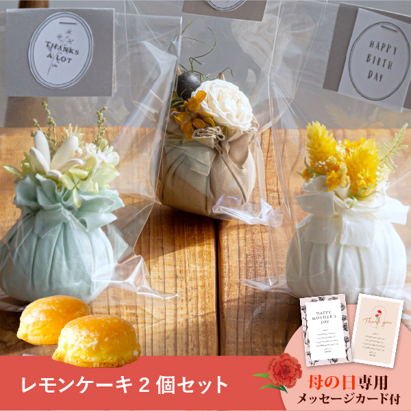 そんな気持ちを形にする母の日に人気のお花と、菓子工房さっちんとコラボしたレモンケーキのギフトセットです。おしゃれなオリジナルのメッセージカード付き。