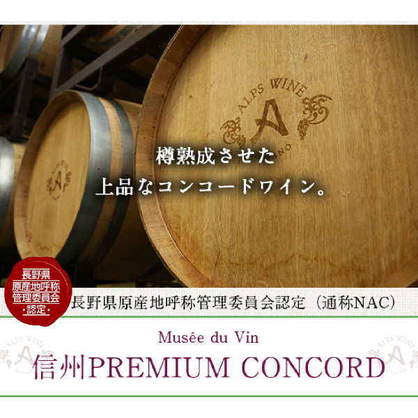 信州松本平産コンコードを100%使用し、フレンチオーク樽にて熟成させました。コンコードの品種特性である甘い香りと樽香のバランスが楽しめる赤ワインです。