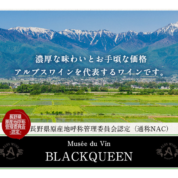 信州松本平産ブラッククイーンをフレンチオーク樽にて熟成させました。濃紫色の深い色合い、凝縮された果実味、そして適度な渋みが特徴のバランスの良い赤ワインです。