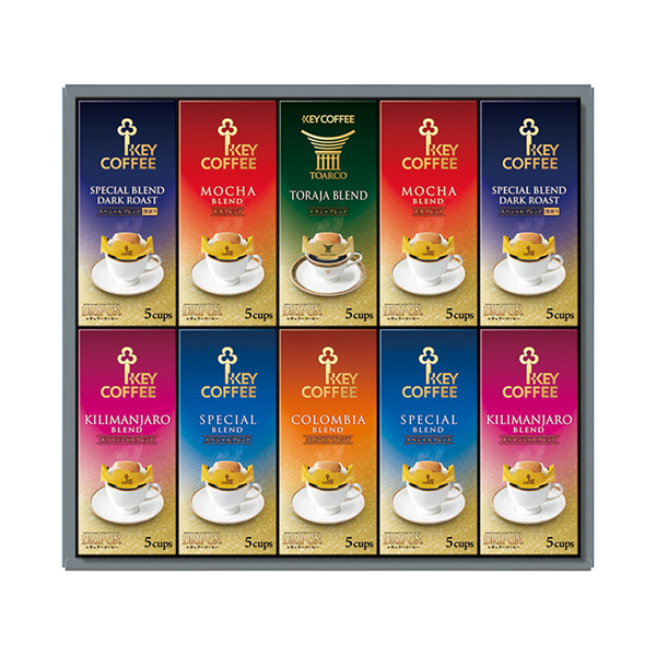 | 内容 | トラジャブレンド(8g×5袋)・コロンビアブレンド(8g×5袋)×各1、スペシャルブレンド(8g×5袋)・モカブレンド(8g×5袋)・キリマンジャロブレンド(8g×5袋)・スペシャルブレンド深煎り(7.5g×5袋)×各2 |