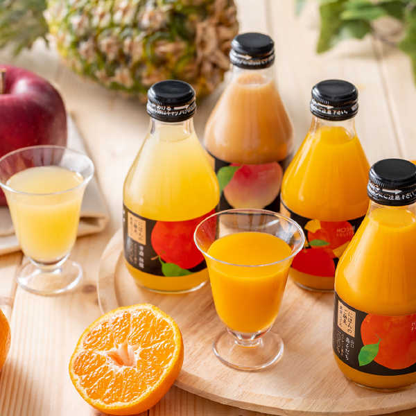 | 内容 | 山口島そだち×2、青森林檎×2、ミックスジュース(国産蜜柑・沖縄パイン・青森林檎)×2、山梨 和歌山桃×2、各180ml |
