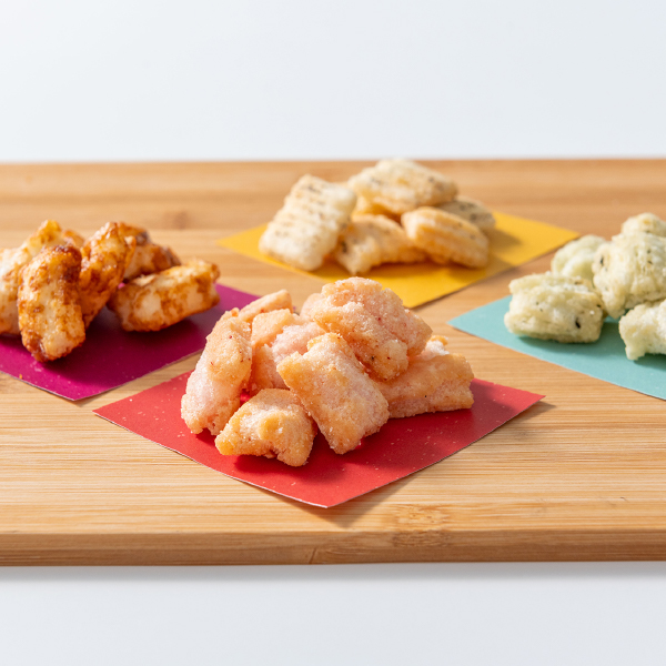 京都亀岡で保津川あられ本舗が昔ながらの製法で作る、お米の香りがする「ほんもの」のあられ。きめが細かく、粘りのある食感が特徴の佐賀県産ヒヨクモチを使用して、健康や美容に良いとされる米油で1つ1つ丁寧に揚げ、香り豊かな4種のフレーバーに仕上げました。京の職人がこだわり続ける、「お米の香りがするあられ」をお楽しみください。