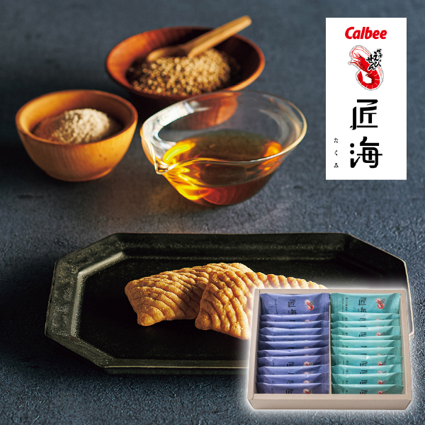 瀬戸内海産の天然えびと瀬戸内で作られた海人の藻塩を使用し、丁寧に作られたこだわりのかっぱえびせんです。『海人の藻塩味』と、焼き上げた後に仕上げに掛ける油に“かどやのごま油”を使用した、えびとごま油の香ばしい香りが口いっぱいに広がる『かどやのごま油味』の2種類。水揚げされたえびを鮮度を損なわないうちに急速冷凍することで、風味・うま味がそのまま活きています。