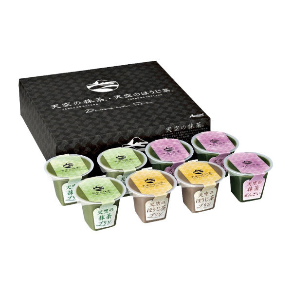 | 内容 | 天空の抹茶プリン(約100g)・天空の抹茶ぜんざい(約97g)×各3、天空のほうじ茶プリン(約100g)×2 |