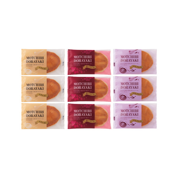 | 内容 | もっちりどら焼き(クリーム・苺クリーム・小豆クリーム)×各3 |