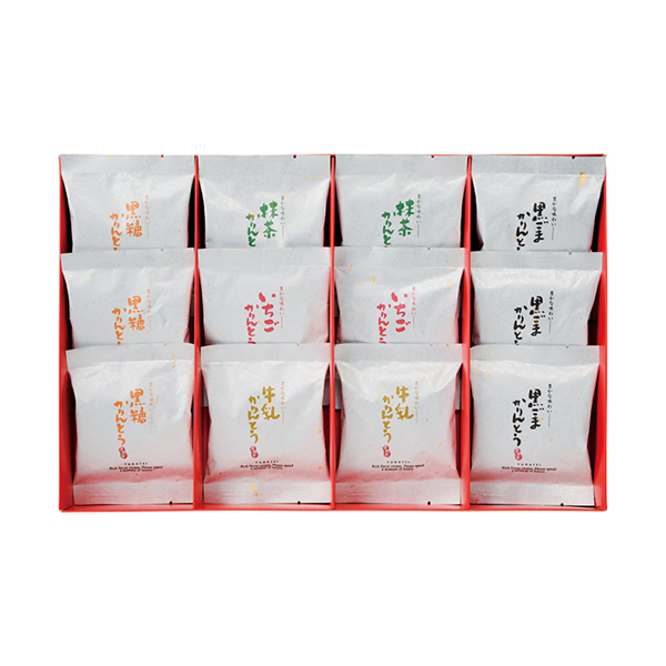 自然な甘さの黒糖や香ばしい黒ごまの風味に加え、牛乳、抹茶、いちご風味の詰め合わせギフトをご用意しました。