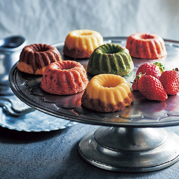 果実風味の生地に、フレーバーやつぶつぶ果実をプラス。ひと口で、ふたつおいしいかわいらしいクグロフです。
