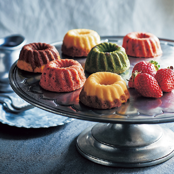 果実風味の生地に、フレーバーやつぶつぶ果実をプラス。ひと口で、ふたつおいしいかわいらしいクグロフです。