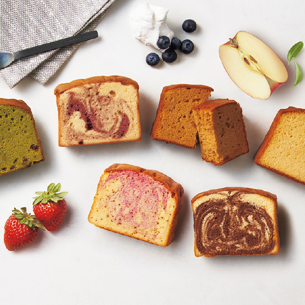 フルーツを混ぜ込んだ大きなしっとりパウンドケーキです。ずっしりとしたサイズ感ですが、ふんわり軽い食感で意外にぺろりと食べられます。朝食代わりやデザートにも。フルーツとフレーバーが組み合わさったそれぞれの味わいをお楽しみください。