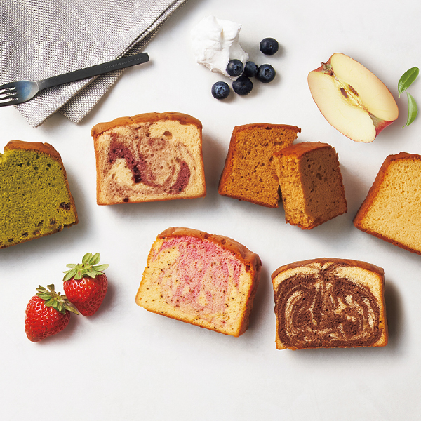 フルーツを混ぜ込んだ大きなしっとりパウンドケーキです。ずっしりとしたサイズ感ですが、ふんわり軽い食感で意外にぺろりと食べられます。朝食代わりやデザートにも。フルーツとフレーバーが組み合わさったそれぞれの味わいをお楽しみください。