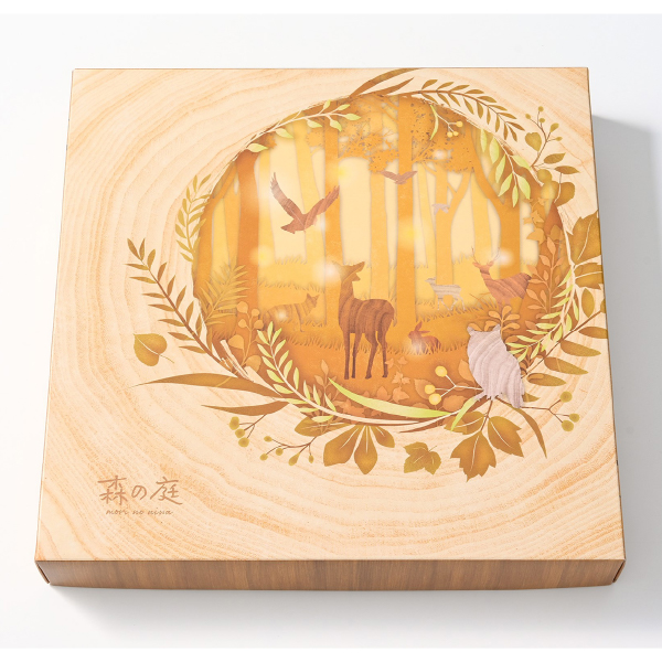 非日常の森の庭で素朴なお菓子を味わう『森の庭』シリーズ。しっとりバームクーヘンにカラメルソースをまとわせ、砂糖をかけてさらに焼き上げた「焦がしキャラメルがしみ込んだバーム」と、「しっとりバームクーヘン」の2種を詰め合わせました。ひと手間かけた味わいをお楽しみください。