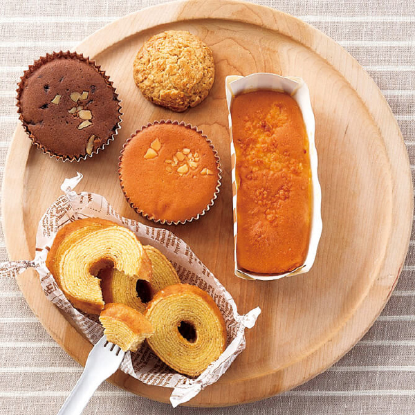 元気なたまごをたっぷりと。ちょっと贅沢なティータイム。有精卵をたっぷり使ったスイーツの詰合せ。ミニバームクーヘンや、マドレーヌ、オートミールのクッキーなどバラエティ豊富だから、みんなの集まりが華やぎます。