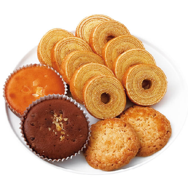 | 内容 | オートミールクッキー×3枚、チーズスティック×2個、ミニバームクーヘン7個入×2袋、マドレーヌ(プレーン)・マドレーヌ(チョコ)×各2個 |