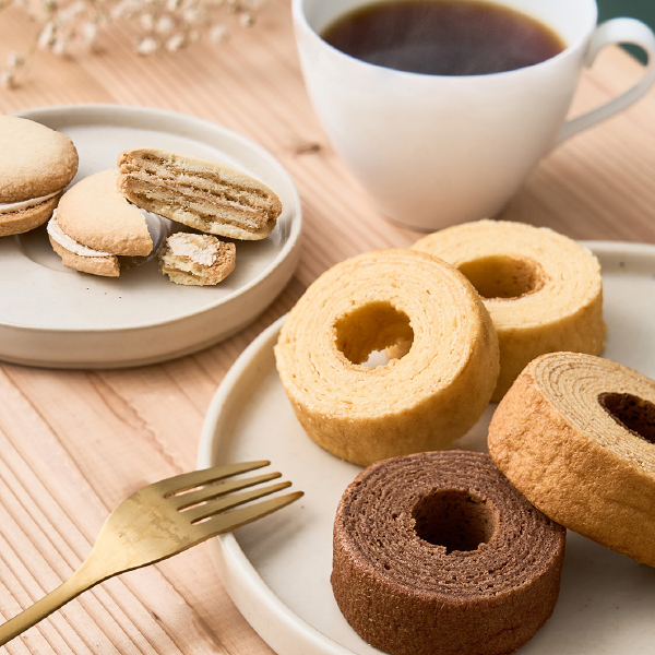 | 内容 | ふんわりバームクーヘン(ミルク・ココア×各4個、黒糖×3個)、七層のキャラメルサンドクッキー×4個、三喜屋珈琲のレギュラーコーヒー×3袋