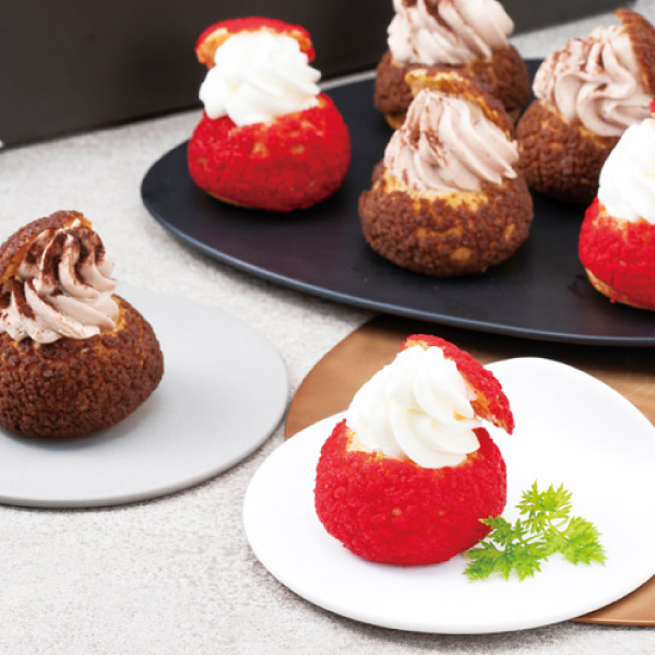 北海道生クリームと和三盆糖のカスタードを中に詰めたシンプルなツインシュー、ココア生地に生チョコとカスタードのツインシューの2種の詰め合わせセットをお届けします。